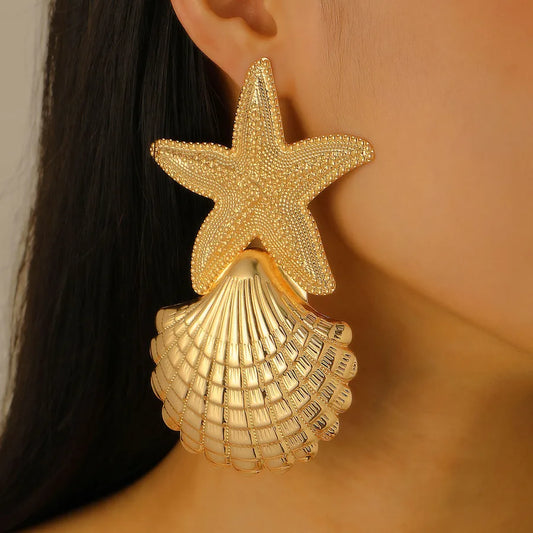 1 Pair Elegant Exaggerated Starfish Shell Plating Alloy Drop Earrings