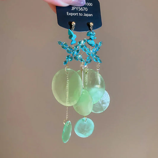 1 Pair Elegant Lady Sweet Starfish Inlay shell Copper Shell Drop Earrings
