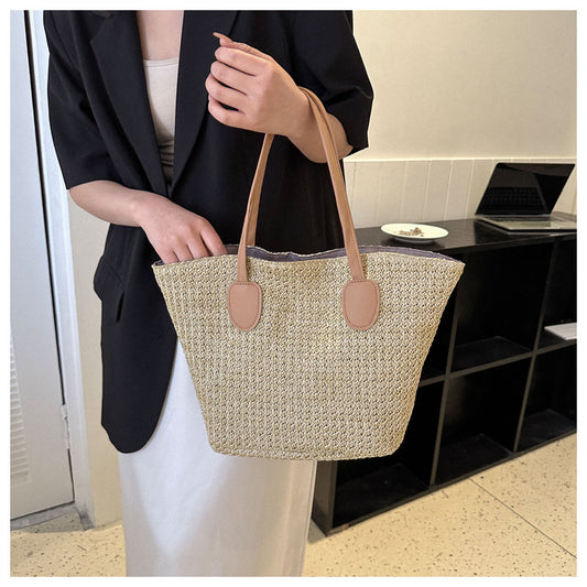 new straw simple braided tassel shoulder beach bucket women's bag38*30*20cm