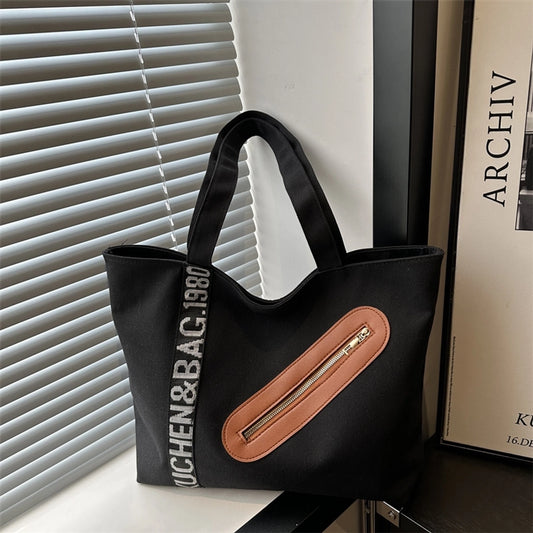 Women's Canvas Color Block Streetwear Square Zipper Shoulder Bag