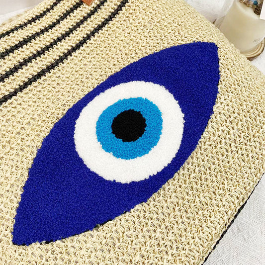 Women's Straw Devil's Eye Stripe Classic Style Weave Square Zipper Tote Bag Straw Bag