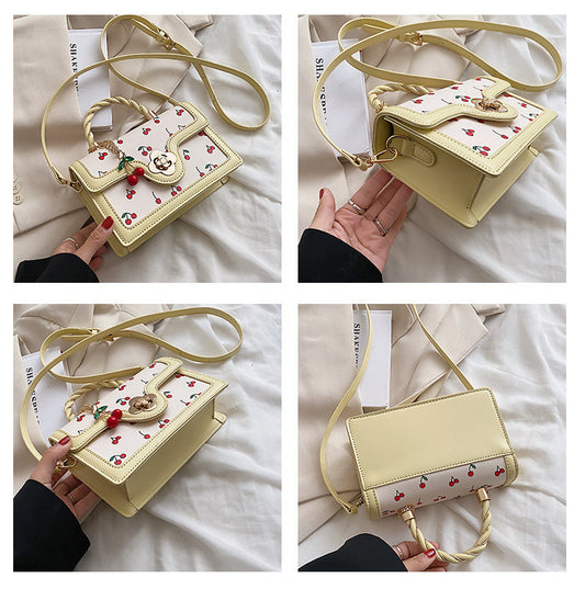 women's pu leather fruit fashion metal button square buckle handbag crossbody bag