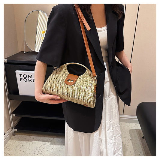 Women'S Small Straw Solid Color Vacation Lock clasp Straw Bag