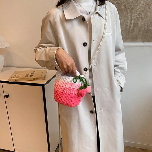 Women's Small Fabric Strawberry Basic Classic Style Bucket Open Crossbody Bag