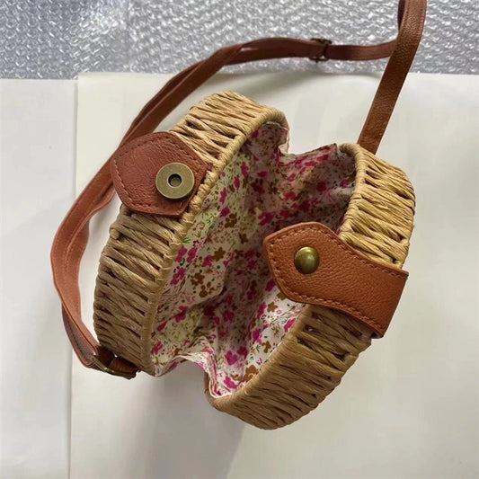 Women'S Straw Solid Color Ethnic Style Round Square Hook Loop Straw Bag