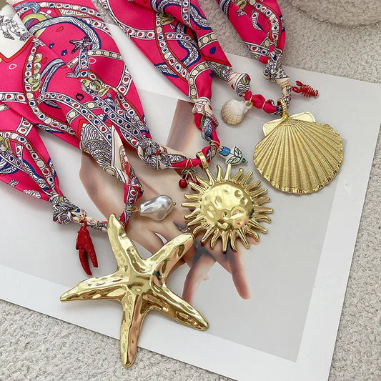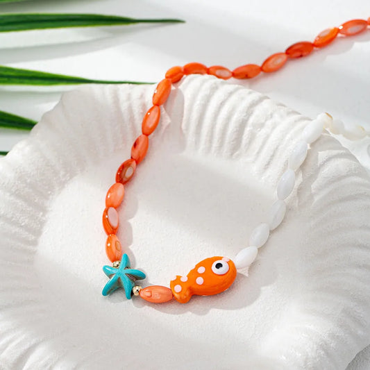 ✈️ 🧜♀️Sirena Dorada 18K Gold-Plated Ocean Theme Necklace with Starfish Pendant