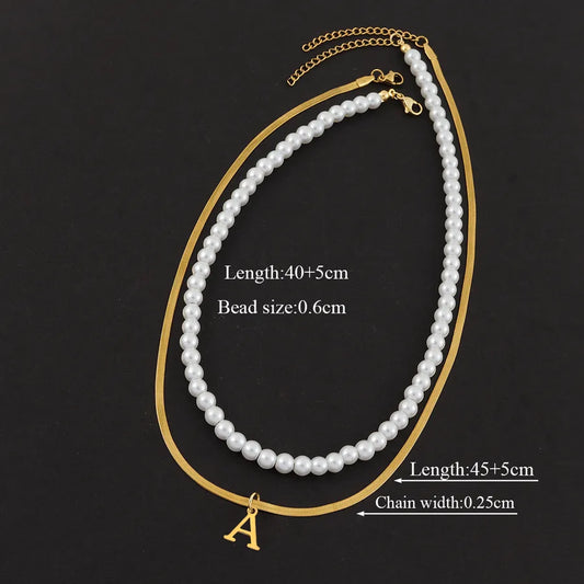 Casual Elegant Simple Style Letter 201 Stainless Steel 304 Stainless Steel Artificial Pearl Beaded Chain snake chain Layered Necklaces Wholesale