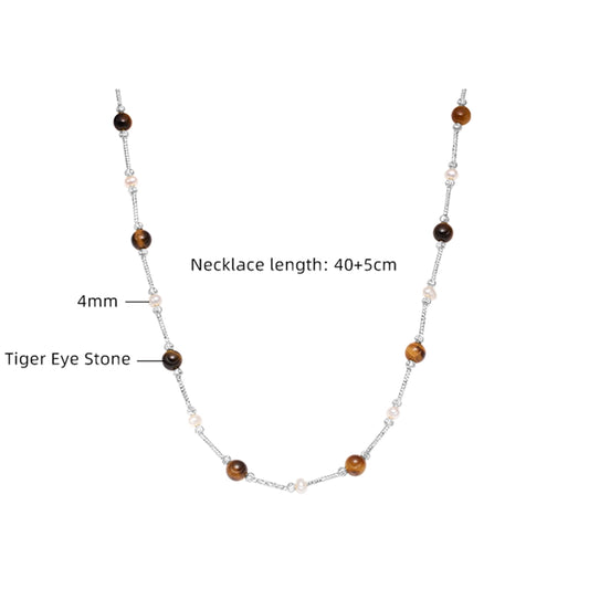 925 Sterling Silver Tiger Eye Long-Lasting Plated Beaded Pearl Plating Geometric Necklace