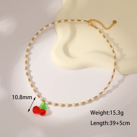 Sweet Simple Style Cherry Solid Color 18K Gold Plated Imitation Pearl 304 Stainless Steel Beaded Chain Beaded Necklaces
