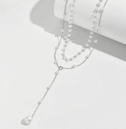 Elegant Wedding Round Alloy Pearl chain Y-necklaces Wholesale