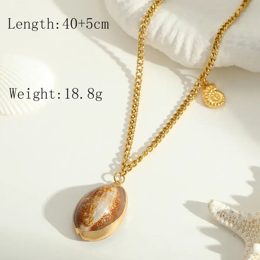 Jewelry Simple Style Solid Color 304 Stainless Steel Shell 14K Gold Plated Polishing Inlay Necklace