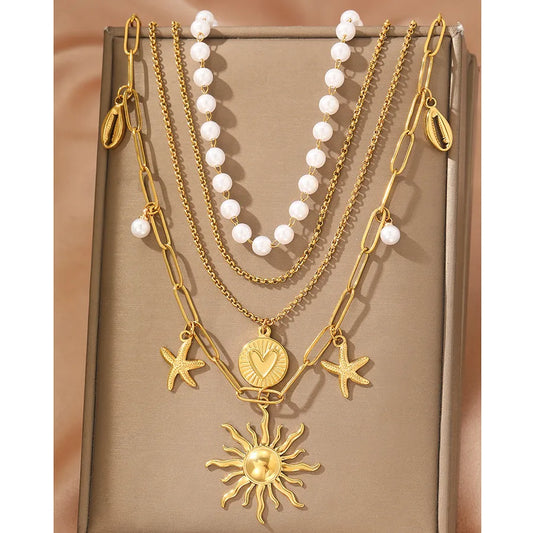 Wholesale Jewelry Elegant Retro Sun Starfish Heart Shape 304 Stainless Steel Plating Necklace Paperclip Chain Belcher Chain