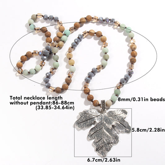 Retro Leaf Alloy natural stone Glass Pendant Necklace Sweater Chain In Bulk Natural stone necklace