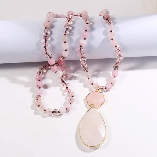 Bohemian Water Droplets natural stone Glass Pendant Necklace Sweater Chain In Bulk Natural stone necklace