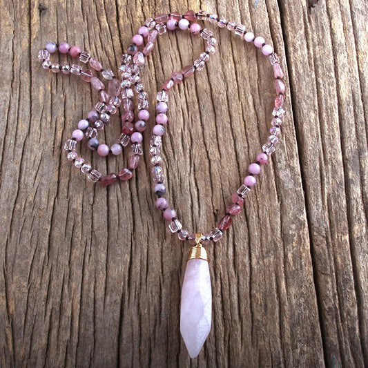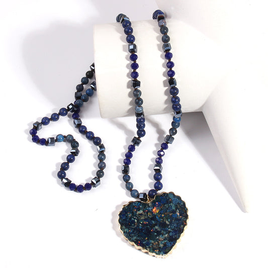 Bohemian Heart Shape Glass Stone Sweater Chain In Bulk Natural stone necklace