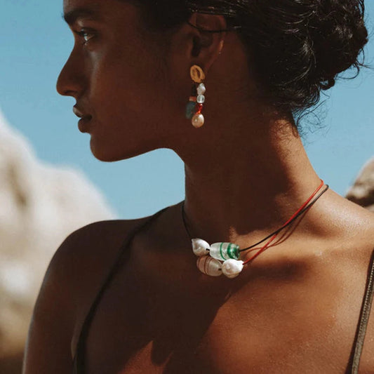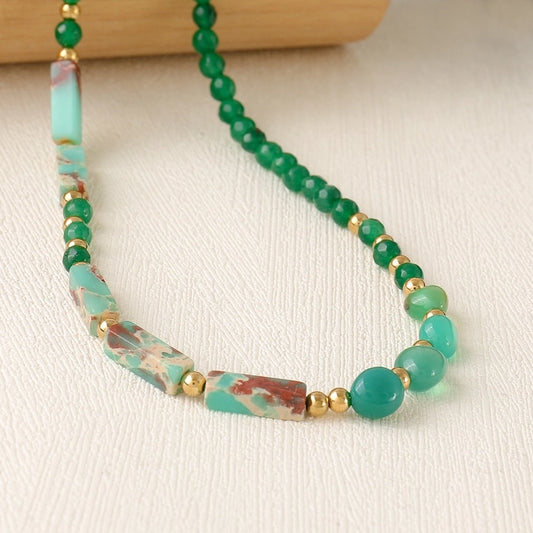 Retro Geometric Glass Stone Sweater Chain In Bulk Natural stone necklace