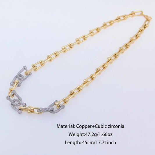 Jewelry Modern Style Geometric Copper Zircon 18K Gold Plated Patchwork Necklace