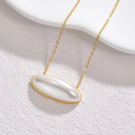 Jewelry Simple Style Oval 304 Stainless Steel Pearl 18K Gold Plated Plating Inlay Pendant Necklace