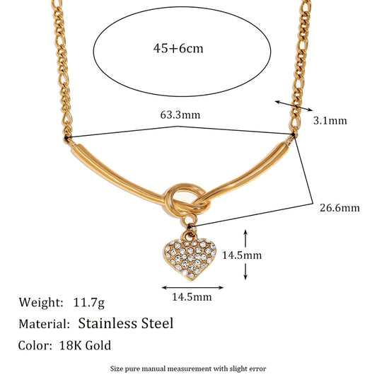 Jewelry Lady Heart Shape 304 Stainless Steel Zircon 18K Gold Plated Pendant Necklace