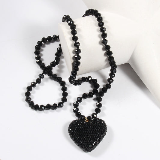 Shiny Heart Shape Glass Rhinestones Pendant Necklace Sweater Chain In Bulk Natural stone necklace