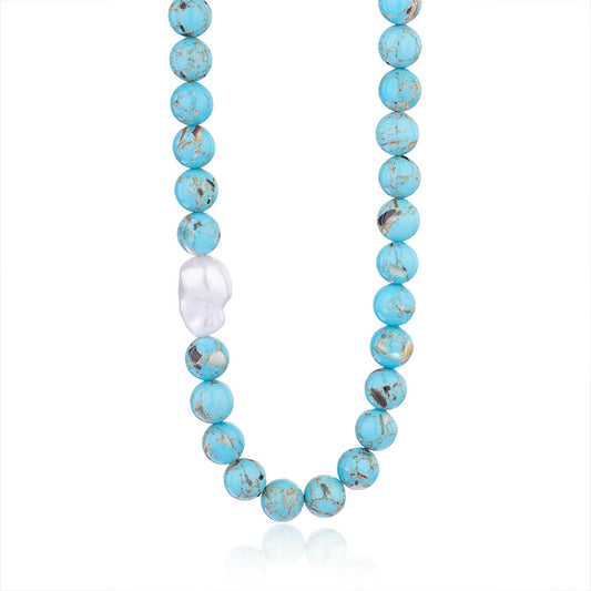 Exaggerated Geometric 316L Stainless Steel natural stone Freshwater Pearl Beaded Chain Beaded Necklaces