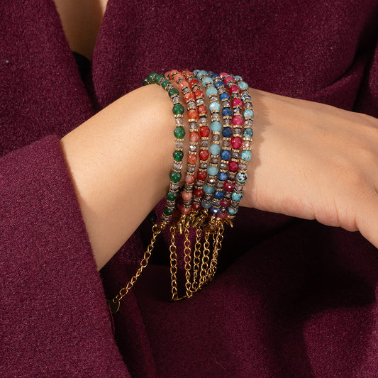Retro Geometric Natural Stone 316L Stainless Steel natural stone Beaded Chain Beaded Necklaces