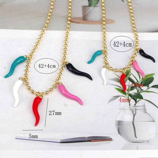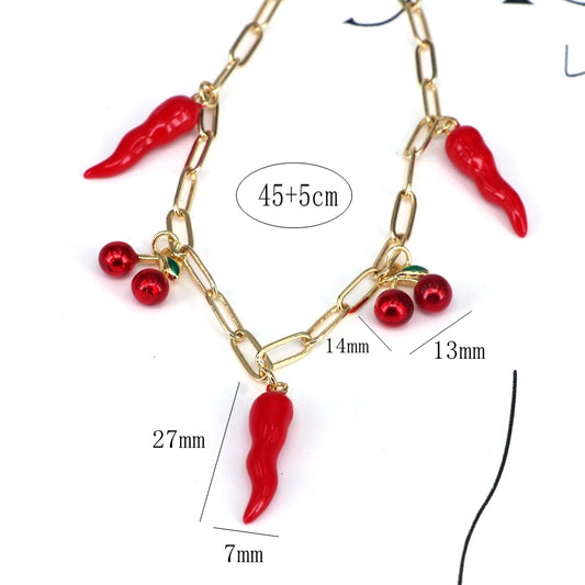 Copper ball chain Gold Plated Enamel chili Pendant Necklace