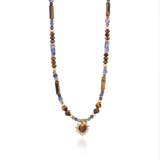Retro Geometric Heart Shape Zircon 316L Stainless Steel natural stone Beaded Chain Beaded Necklaces
