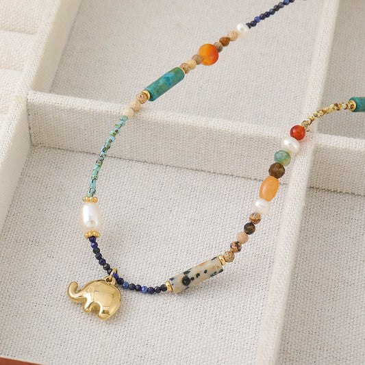 Casual Cute Commute Elephant natural stone Freshwater Pearl Copper Beaded Chain Beaded Necklaces