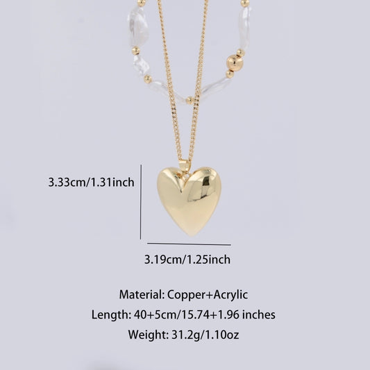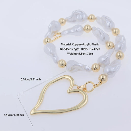 Wedding Baroque Style Classic Style Heart Shape 18K Gold Plated Arylic Copper Pendant Necklace