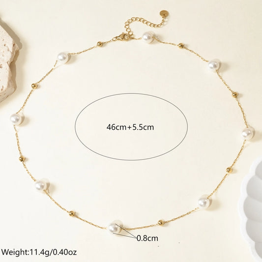 Jewelry Elegant Geometric 304 Stainless Steel Artificial Pearls 14K Gold Plated Polishing Inlay Necklace