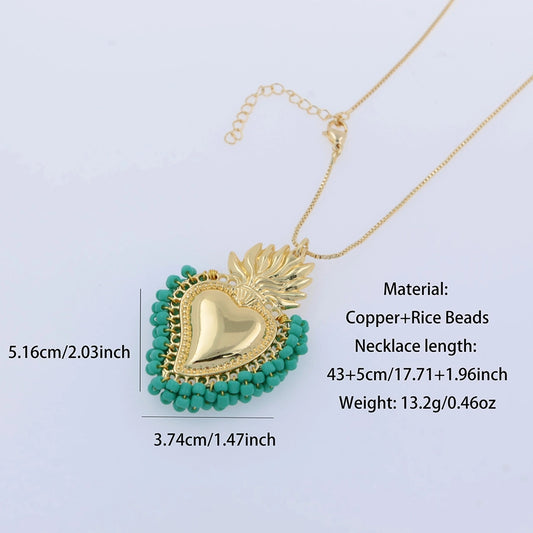 Arylic Copper 18K Gold Plated Beaded Heart Shape Pendant Necklace
