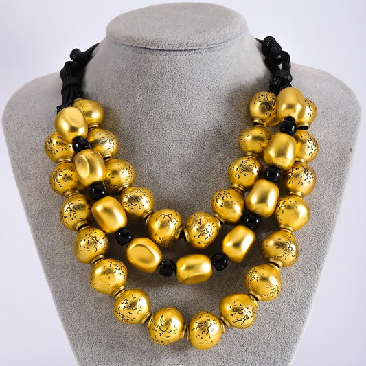 Copper 18K Gold Plated Beaded Eye Acrylic Glass Necklace