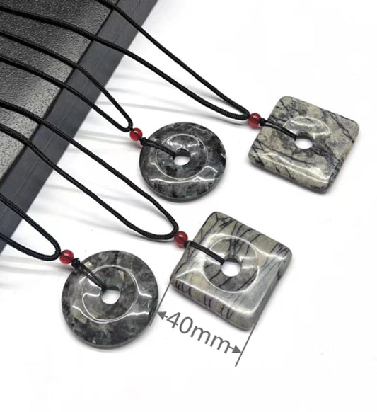 Vintage Style Handmade Simple Style Geometric Round natural stone Natural Stone Network Stone Black Flash Pendant Necklace In Bulk