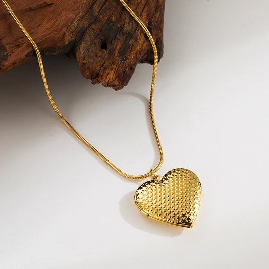 Stainless Steel 18K Gold Plated Modern Style Simple Style Heart Shape Pendant Necklace Locket Necklace