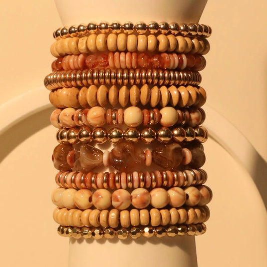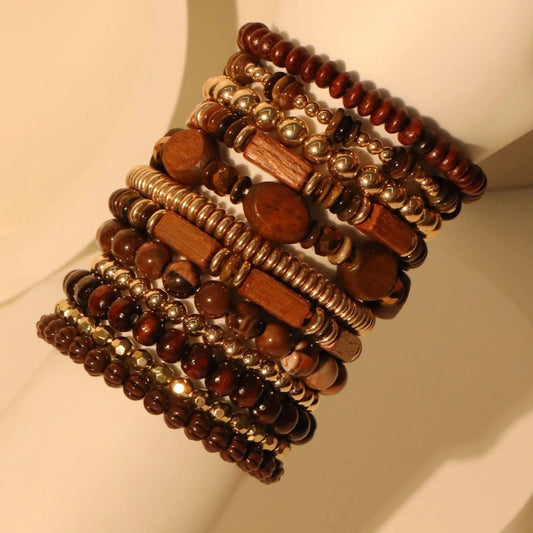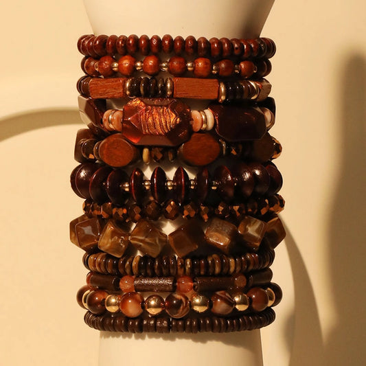Casual Retro Round Rectangle CCB Wood Glass Beaded Chain Beaded Bracelets