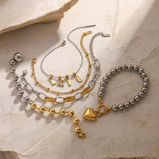 Streetwear Geometric 304 Stainless Steel 18K Gold Plated ball chain Bracelets In Bulk