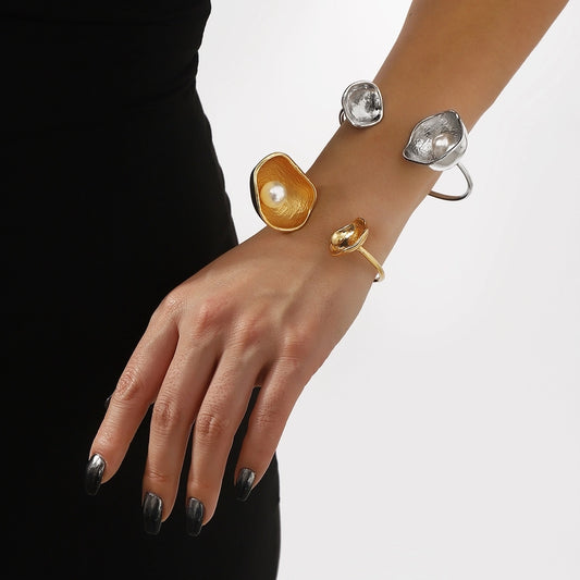 Exaggerated Trumpet Pearl Alloy Bangles
