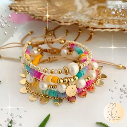 sweet pentagram letter heart shape freshwater pearl shell soft clay beaded braid bracelets