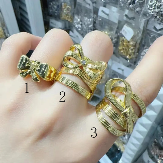 Wholesale Jewelry IG Style Elegant Bow Knot Copper 18K Gold Plated Asymmetrical Rings