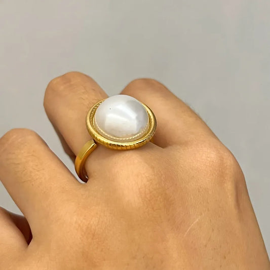 Jewelry Modern Style Artistic Geometric 316 Stainless Steel Pearl Tiger Eye 16K Gold Plated White Gold Plated Gold Plated Open Rings