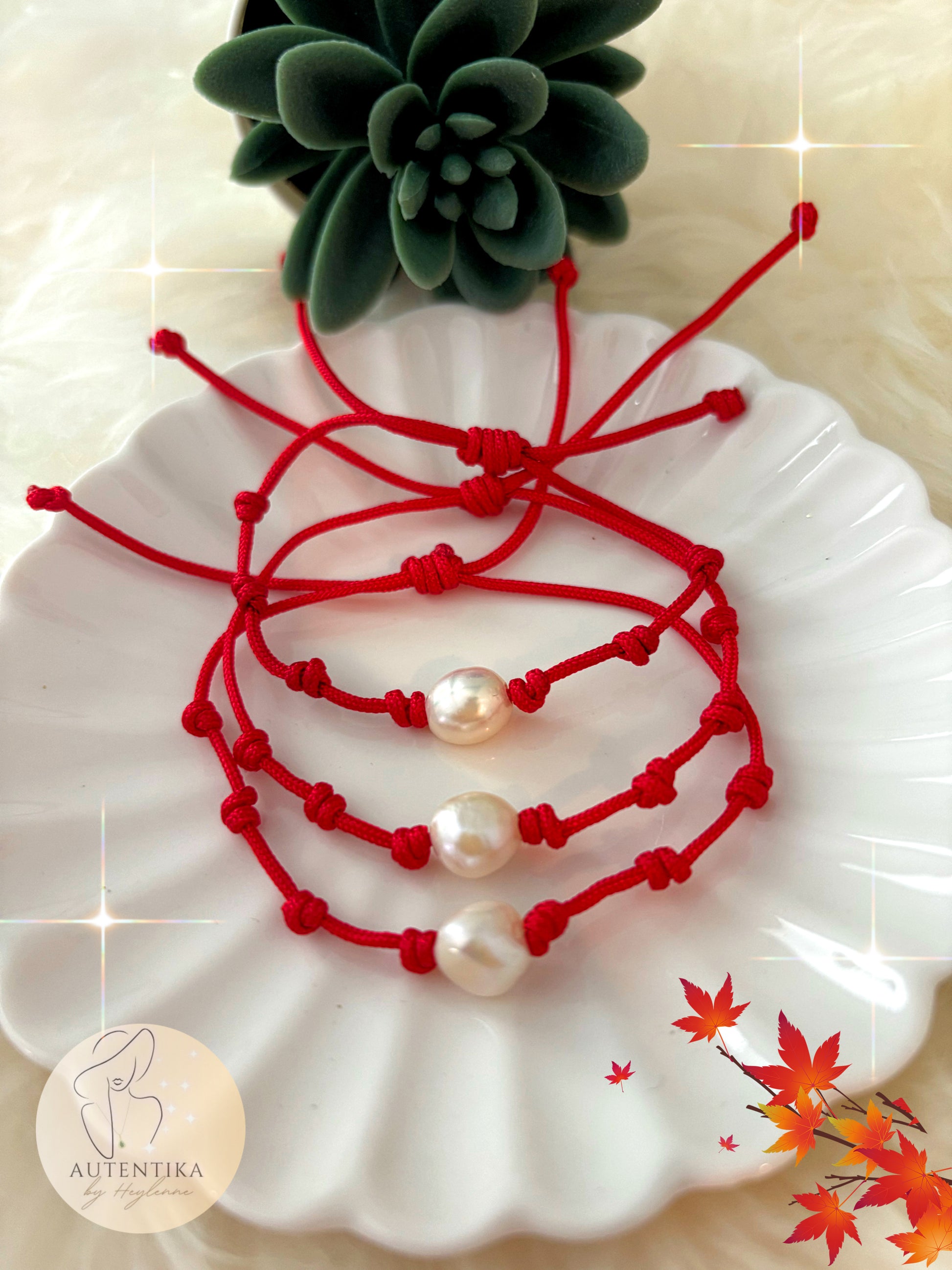 La perla es símbolo de pureza, serenidad y fuerza interior. Se cree que atrae calma, claridad y equilibrio emocional. Al combinarse con los 7 nudos, potencia la protección y eleva la vibración espiritual 🌸✨