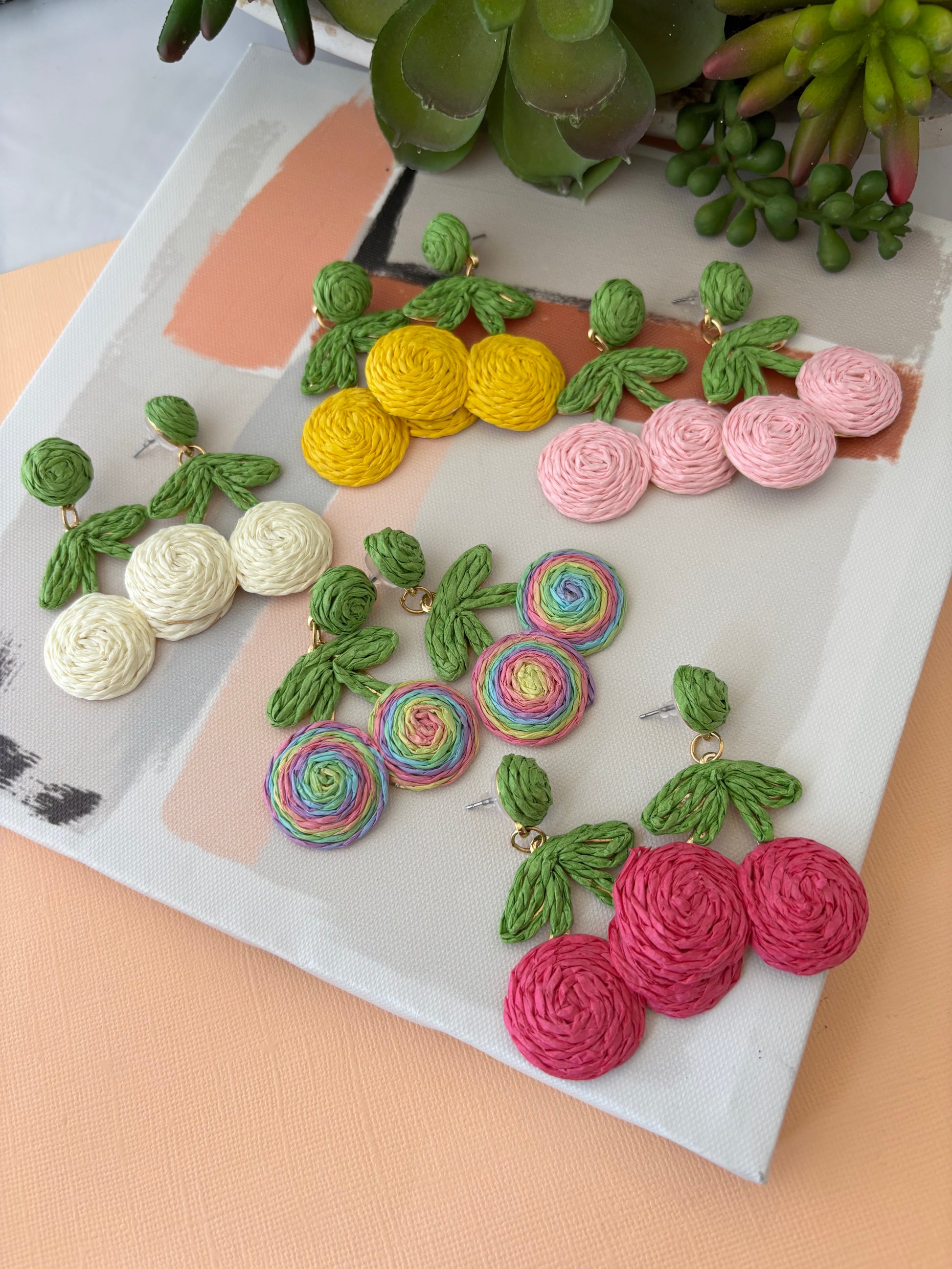 CEREZA VIVA 1 Pair Vacation Beach Commute Cherry raffia Drop Earrings